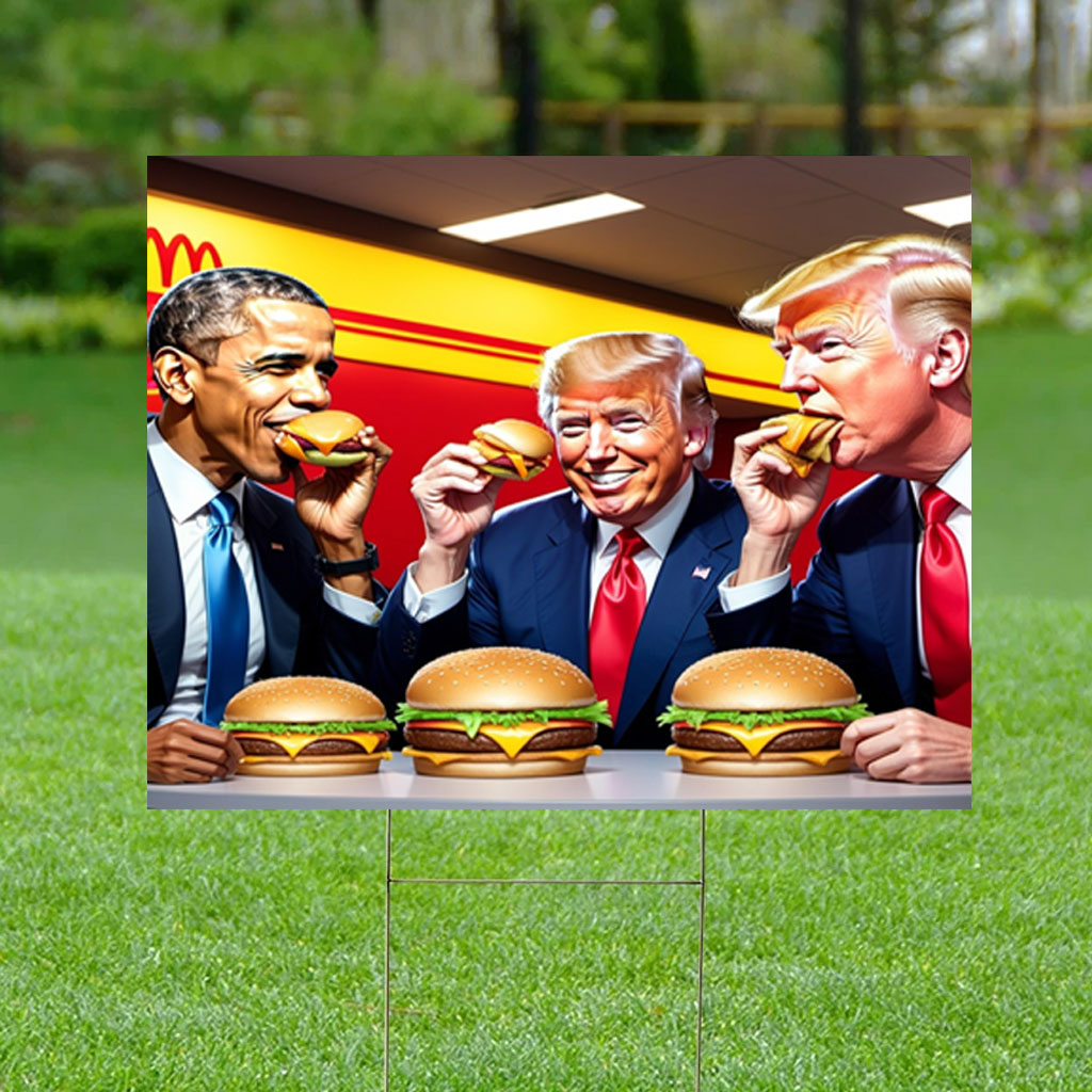 Order your Three Presidents Sharing a McDonald’s Meal Yard Sign today and bring a piece of American history to your doorstep!