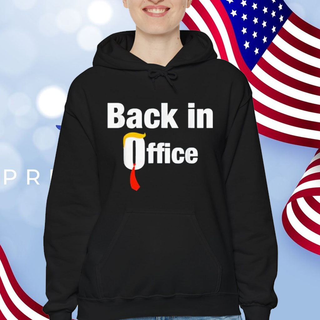 - The iconic “Trump Back In Office” slogan emblazoned across the chest will turn heads and spark conversations.